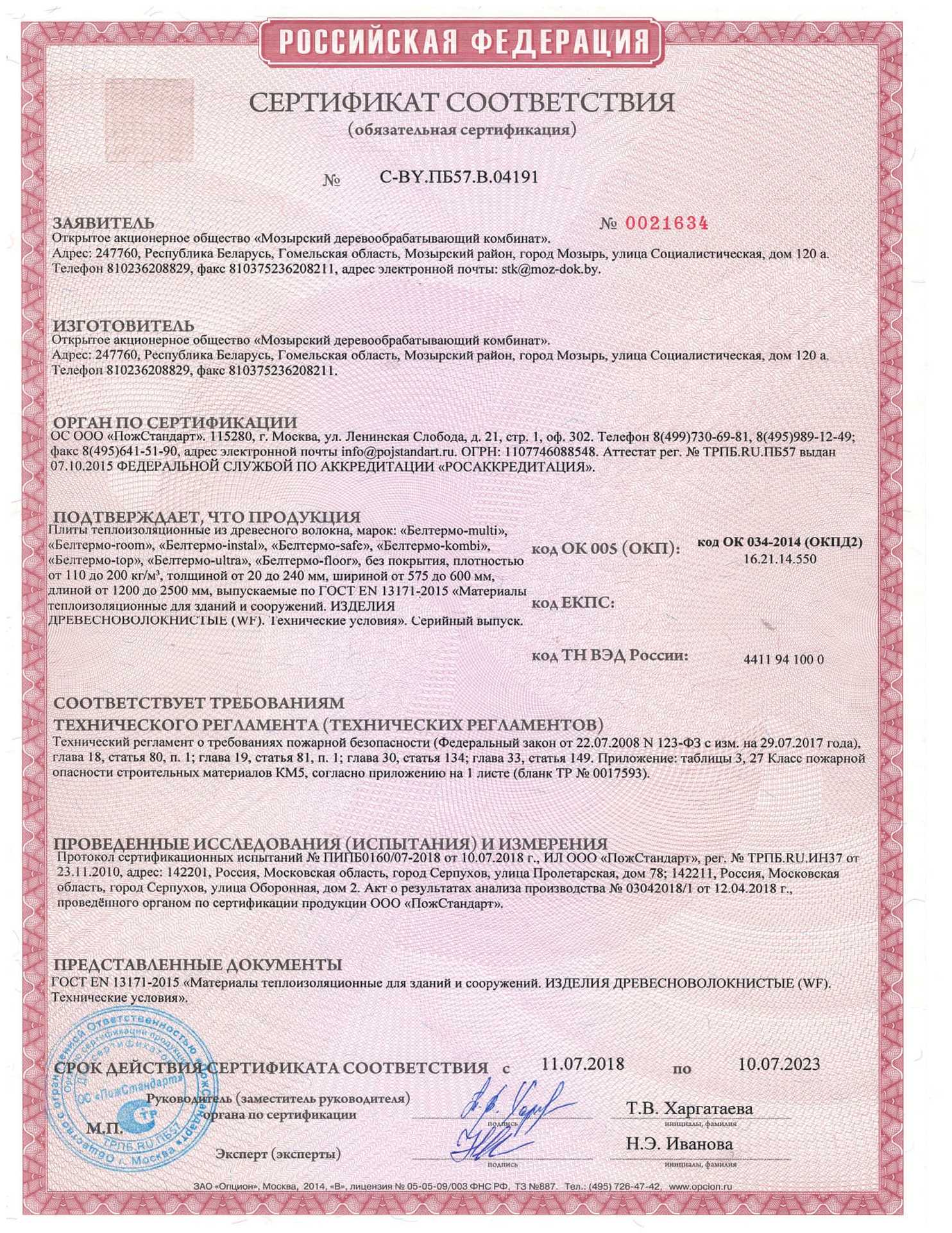 Сертификаты продукции